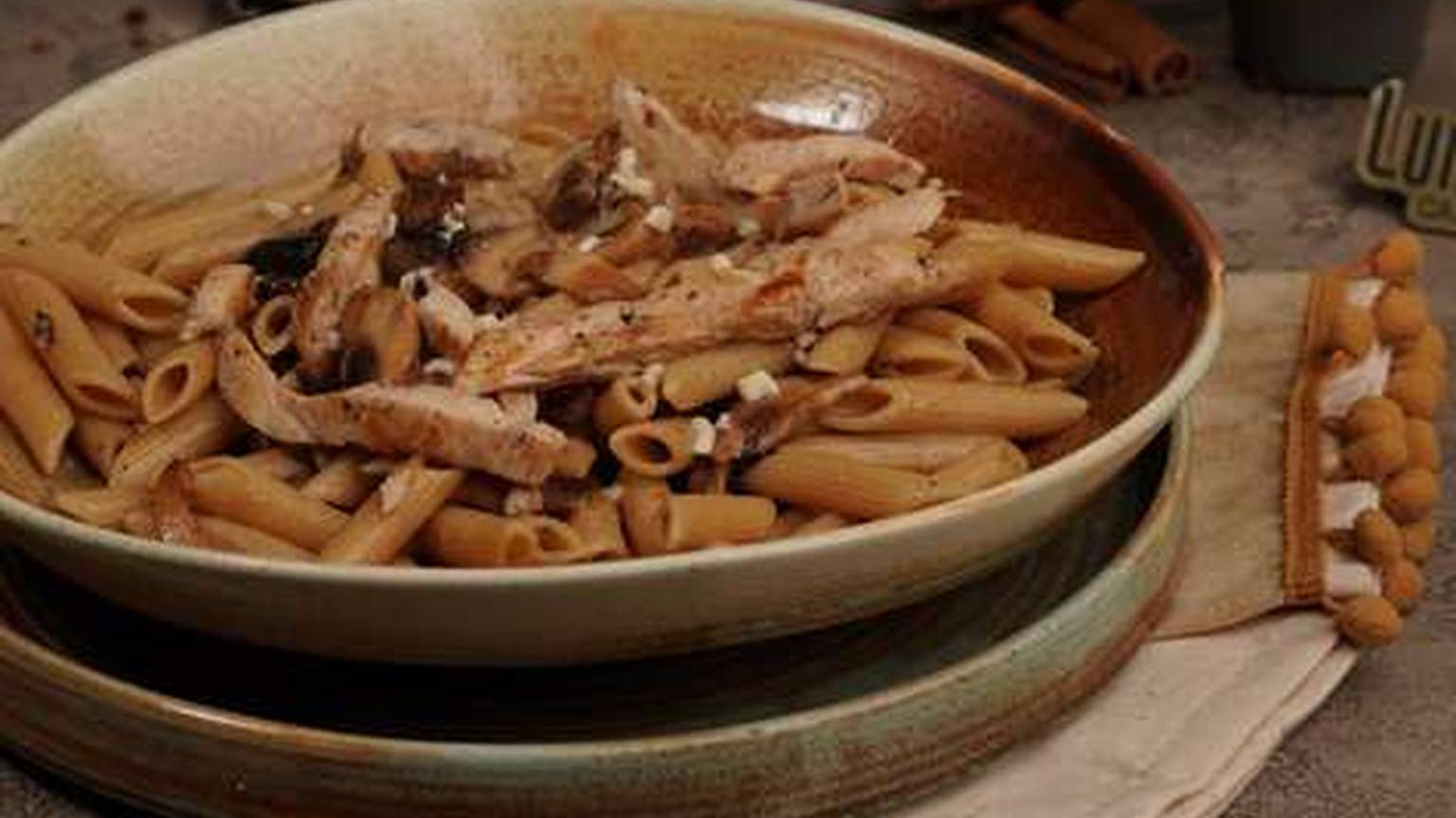mantar, tam buğday makarna, tavuk...<br />kalori: 380